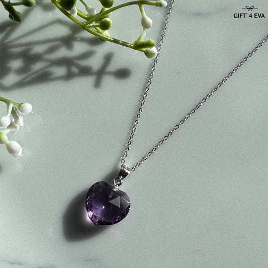 Amethyst Faceted Heart 925 Silver Pendant Necklace