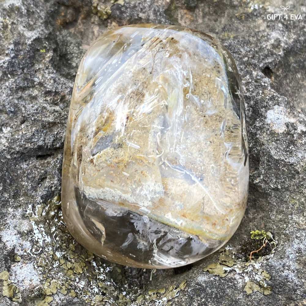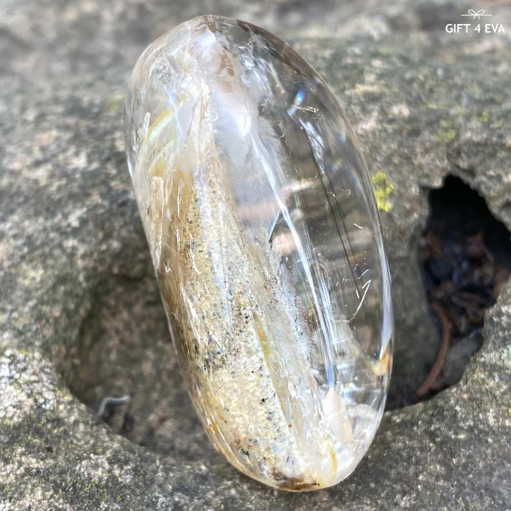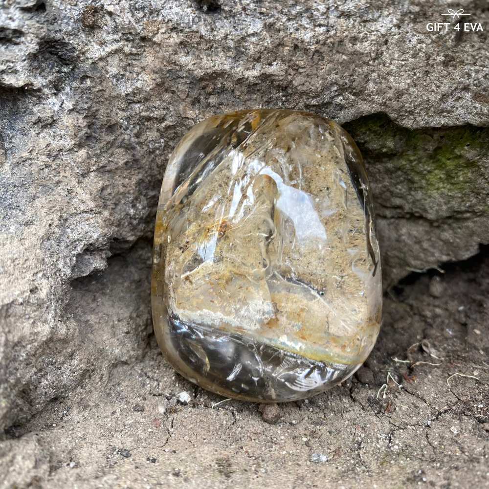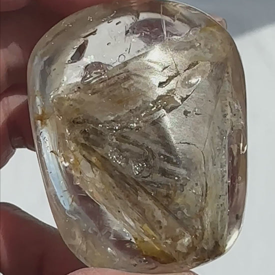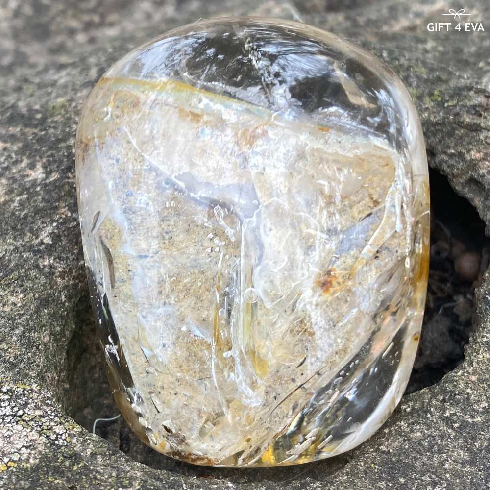 Enhydro Bubble with Falling Sand - A true marvel, this palm stone features a captivating enhydro bubble containing natural sand. Watch as the sand gracefully falls, creating a mesmerizing visual spectacle. This dynamic feature makes it a conversation starter and a standout piece in any collection.